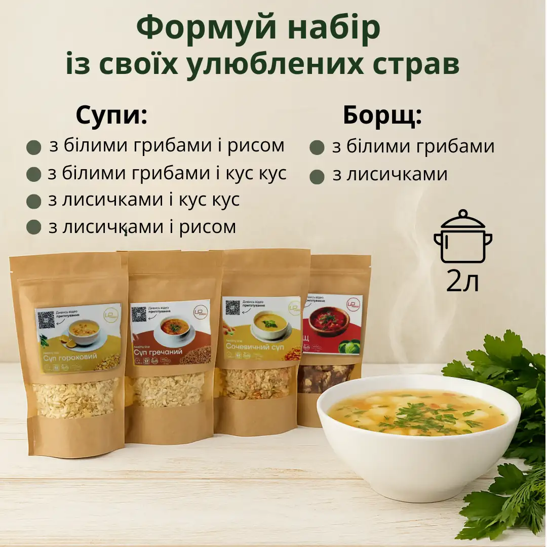 Сушений суп/борщ з грибами на 2л (1 шт)