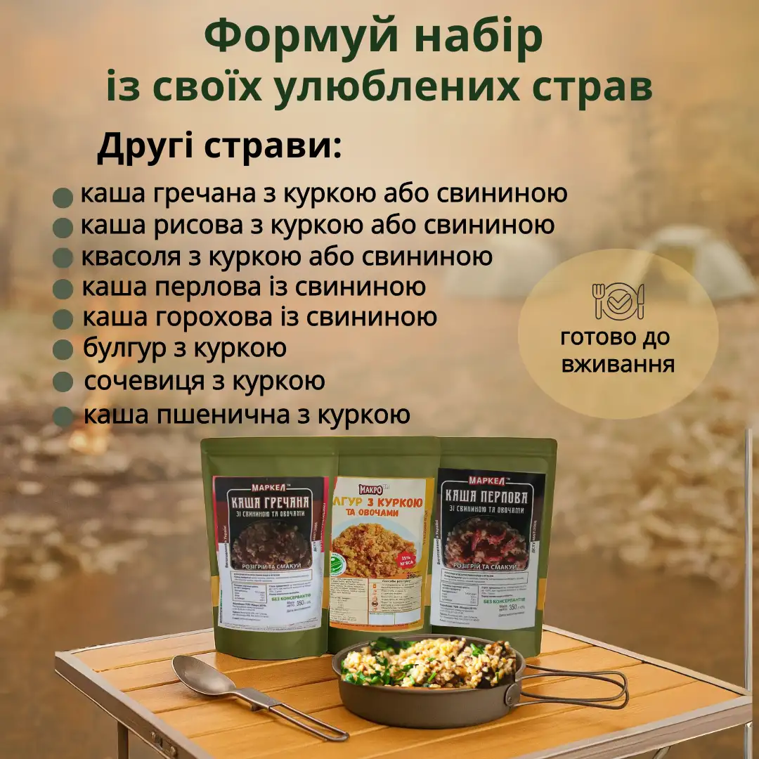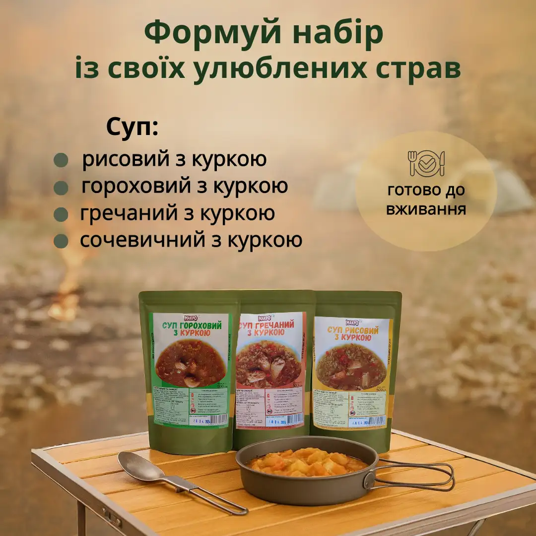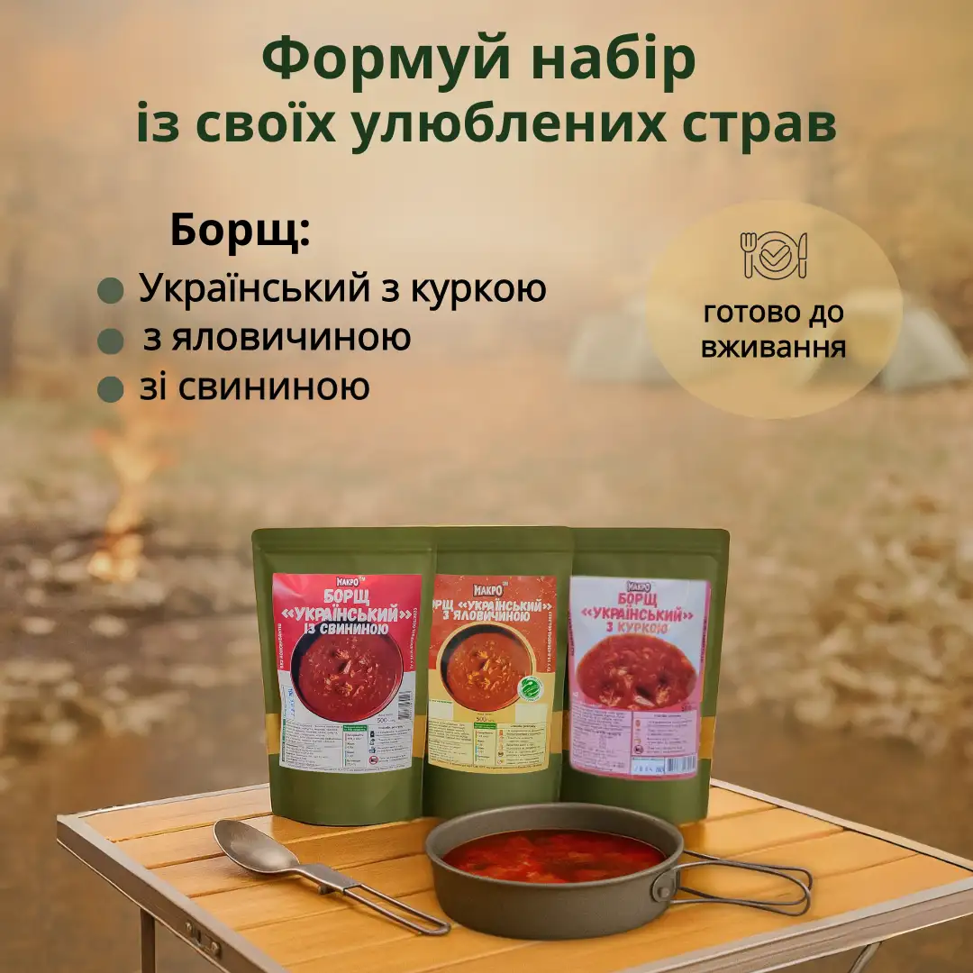 Брали на пробу різні каші і борщі в похід. Чесно кажучи приємно здивовані якістю, а особливо смаком. Смачно і багато мʼяса - маю з чим порівняти.